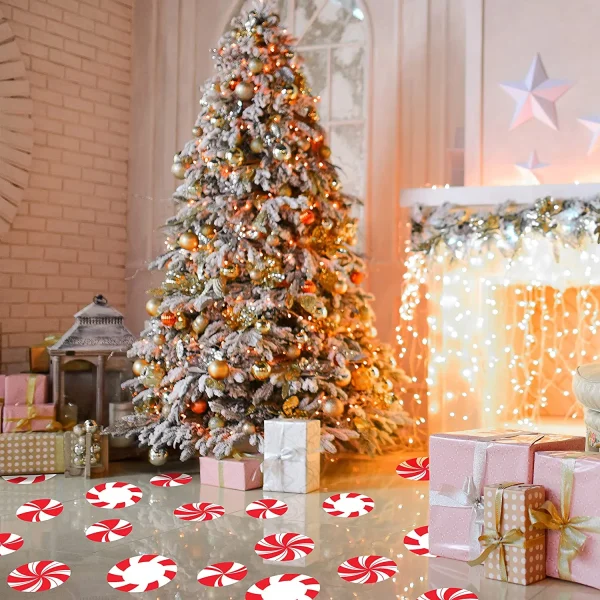 • Peppermint floor decals include 18 pieces of Holiday Floor Sticker Decor in 3 different designs and sizes. Each sticker measures 7″, 10″, and 12″ inches.