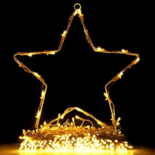 The star string lights are beautiful starlight that looks like a star glittering in the night sky. It comes with 8 flashing modes to create a unique atmosphere for fun. Lighting modes include flashing, twinkle, waves, sequential, slow-glow, chasing, slow fade, and steady on. The waterproof grade is IP44, which allows you to use the lights outdoors. This set of lights will make any event special and memorable! These lights work great with trees from around 8 feet to 13 feet tall. You can use it on the side of your house. Just hang the big star about 10 feet up on an exterior wall. The decoration not only is perfect for tree décor Christmas decorations.