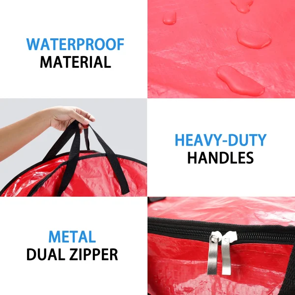 • Easy access with high-quality zippered closure, bag open widely for easy inserting big trees. Sturdy Carry Handles attached for easy transporting