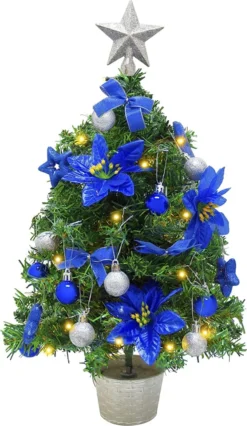 DIY Blue Small Tabletop Christmas Tree With LED Lights 24 In