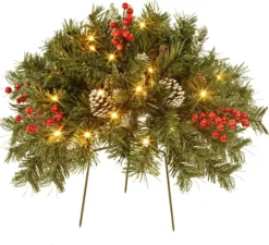 Frosted Christmas Urn Fillers With Pine Cone And Red Berry 18in
